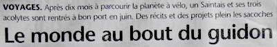INEDIT. -- Thomas Sollier, un Saintais de 23 ans, partira le 20 septembre pour un tour du monde à vélo, aux côtés de trois copains. Rencontre